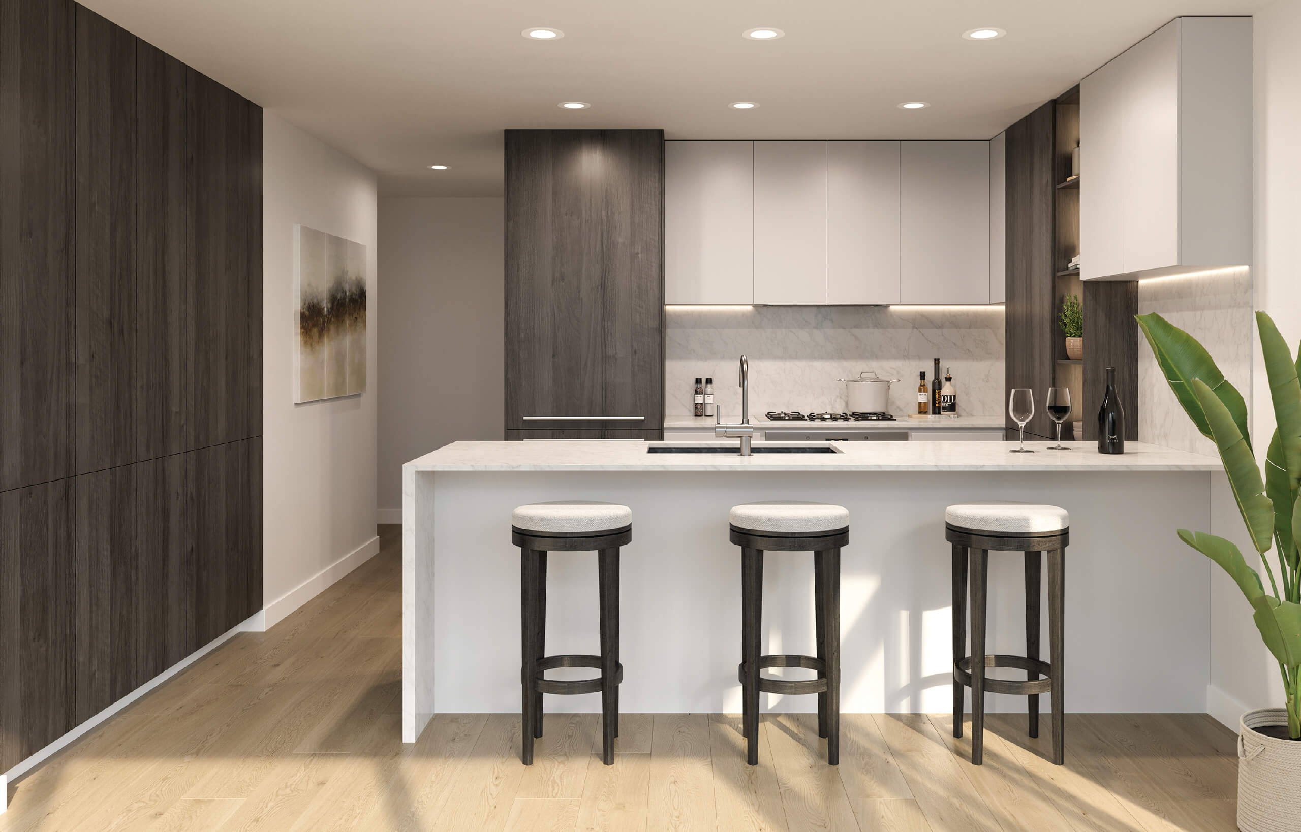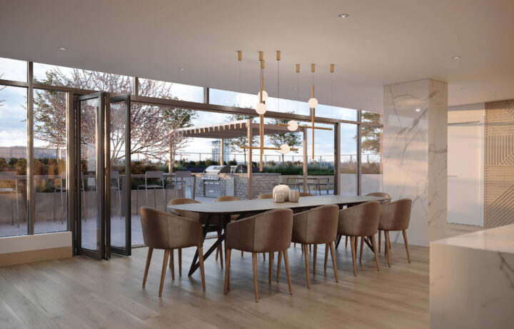 Residents enjoy exclusive access to over 16,000 SF of state-of-the-art spaces spanning two full floors, indoors and out. Amenities include private dining with a chef’s kitchen, indoor-outdoor lounge areas, a club-calibre fitness facility, and a business centre. Active, urban, and social living reaches another level.