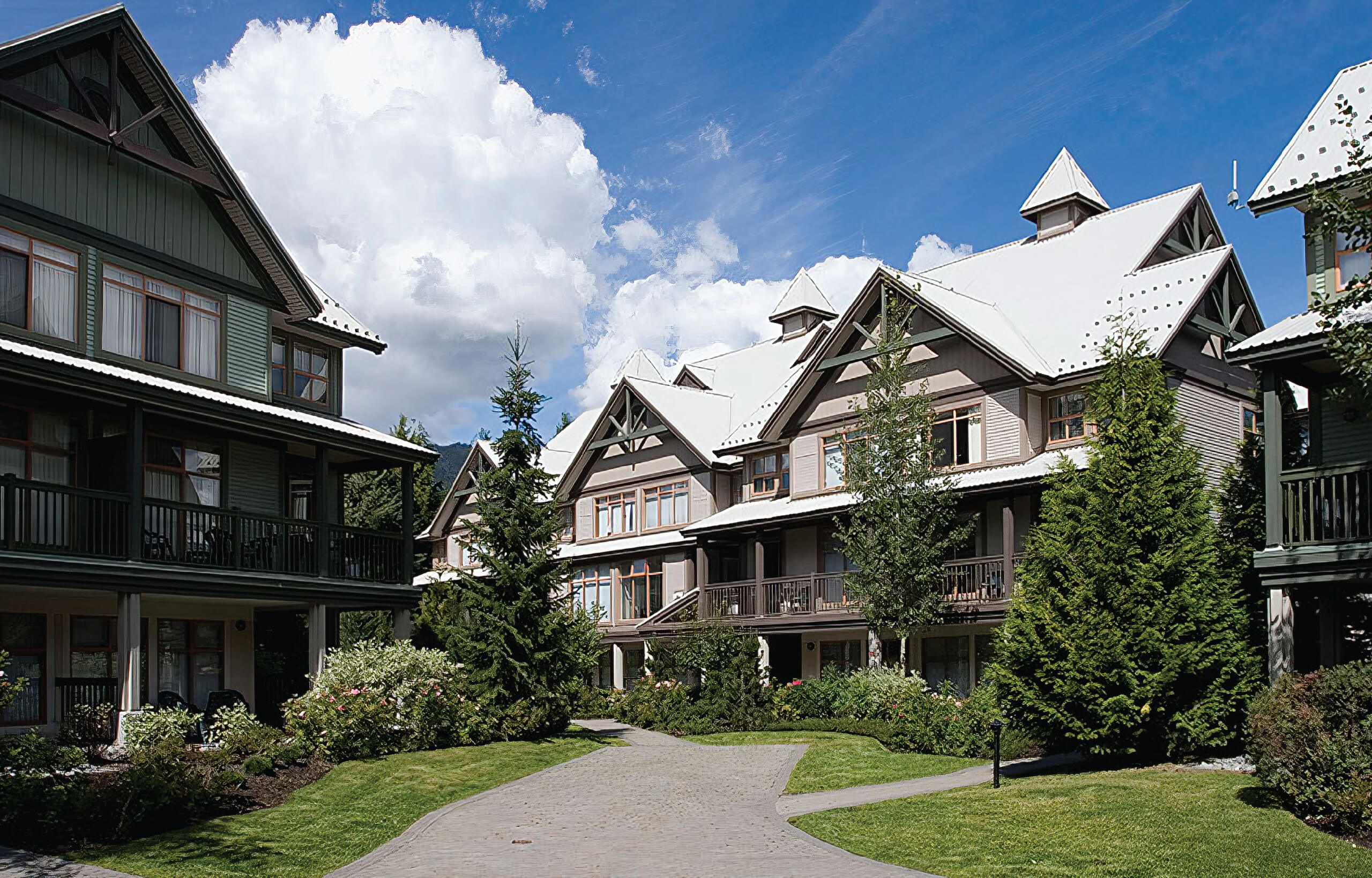After a winter day exploring alpine trails, the Valley Trail leads skiers home to Stoney Creek, a three-phased collection of townhomes winding between the forest and Whistler Village.